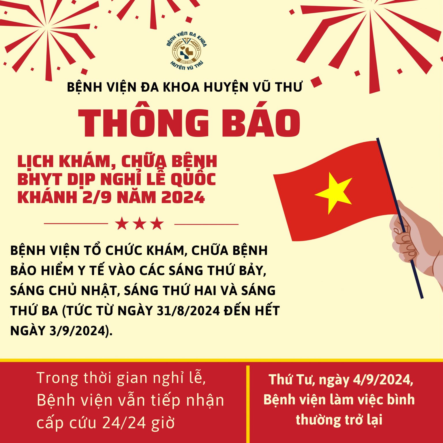 BVVI7437[1] Published 31 Tháng 8, 2024 at 2560 × 2560 in Bệnh viện Đa khoa huyện Vũ Thư thông báo lịch khám, chữa bệnh BHYT dịp nghỉ lễ Quốc khánh 2/9 năm 2024