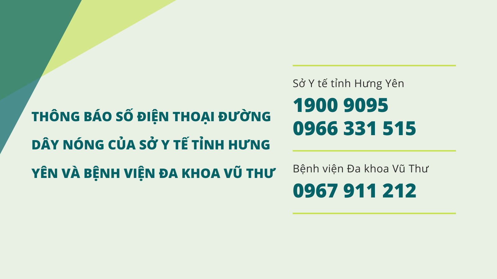 - Số điện thoại đường dây nóng của Bệnh viện Đa khoa Vũ Thư: 0967 911 212