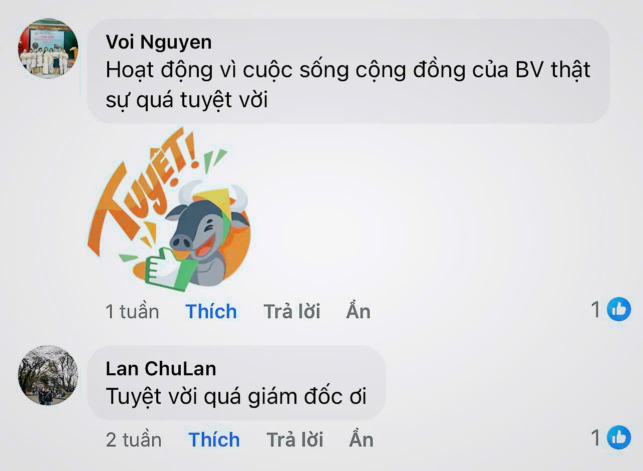 Mỗi phản hồi của quý người bệnh là nguồn động lực to lớn, góp phần giúp bệnh viện không ngừng nâng cao chất lượng khám, chữa bệnh, hoàn thiện dịch vụ và mang đến trải nghiệm y tế ngày càng tốt hơn cho nhân dân.