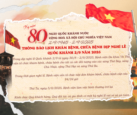 Trong dịp nghỉ lễ Quốc khánh 2/9 từ ngày 30/8 – 2/9/2025, Bệnh viện Đa [...]